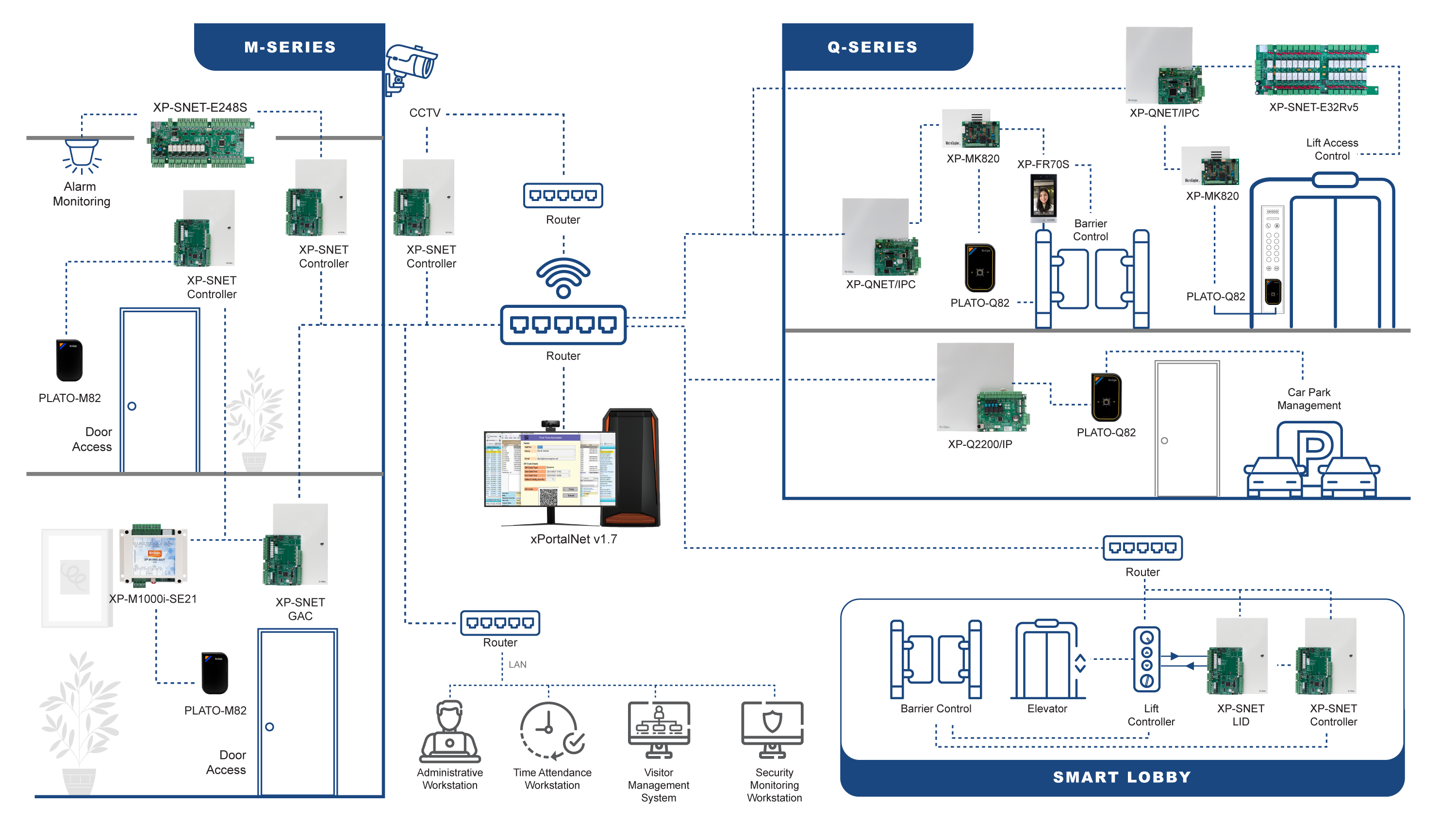 14. | XP-QNET/IPC | Multi-Function IP DESFire QR Network Controller. Switching Power Supply Battery Charger. Back Up Battery. Metal Enclosure. Support Door Access, Lift Access & Alarm Monitoring |
